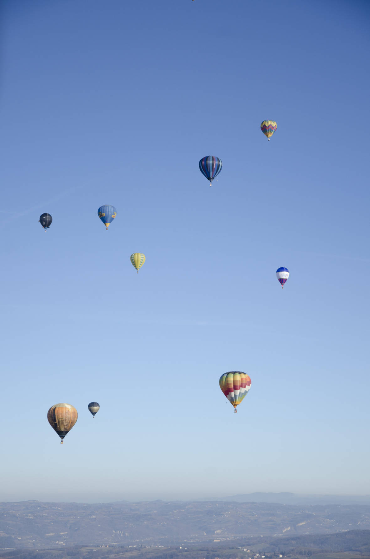 Each year for the last 27 years, the local hot air balloon club of Mondovì has organized an international rally during the Feast of the Epiphany, in early January. Over a three-day period, 32 balloons are launched in competition twice daily, decorating the country skies surrounding Mondovì with their bright colours and distinct shapes. The competitions vary, but include attempts to land the balloons on determined ground targets and the so-called “wolf hunt”, in which one balloon launches and the others must follow it and attempt to land as close to it as possible.